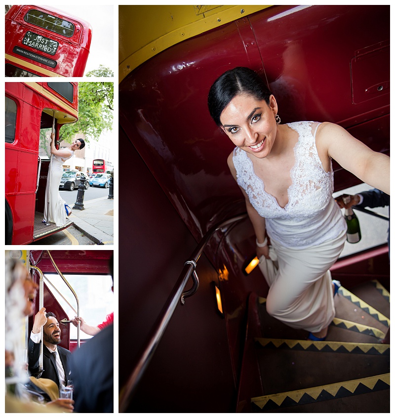 They had chosen the Brydon Room at the iconic Kensington and Chelsea Town Hall in the heart of London for their ceremony, followed by a tour of London on a Routemaster Bus for the many overseas guests and their reception at Hispania in the heart of the City of London near the Bank of England. It’s always a fun challenge taking photographs on a moving object, but the genuinely bubbly atmosphere around the bride and groom and all of their guests (no doubt aided by the generous amount of champagne) came through in all of the images.