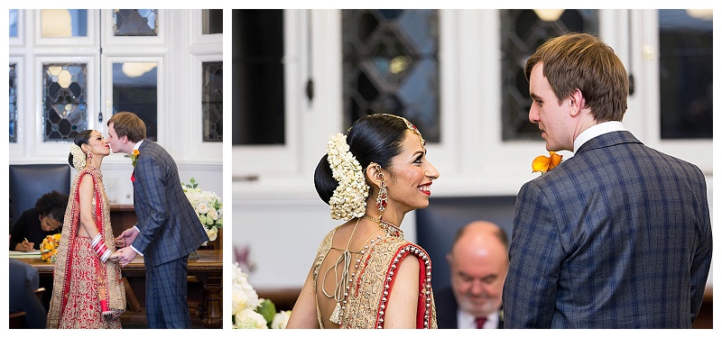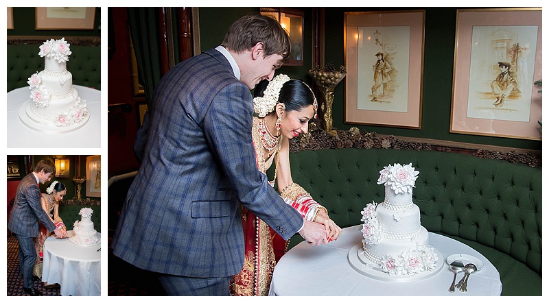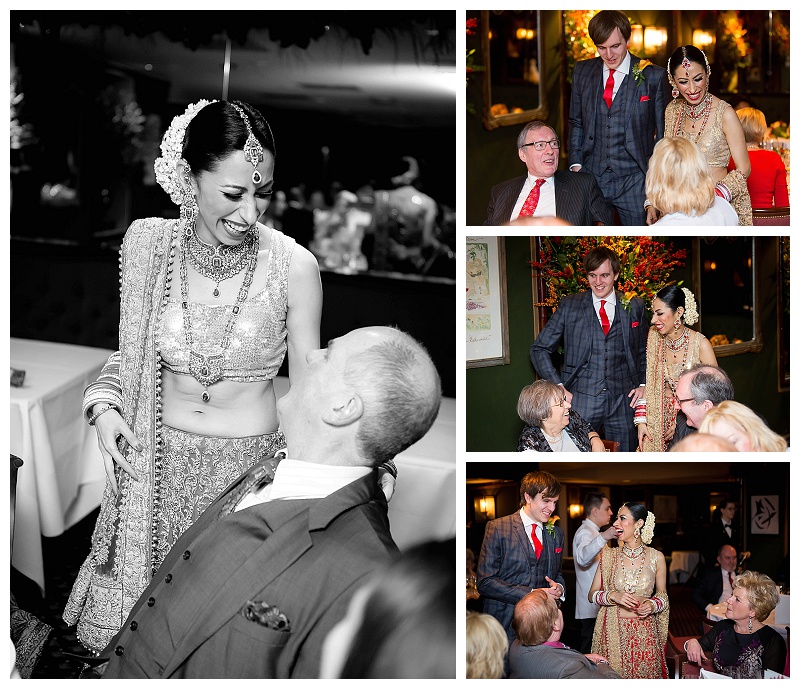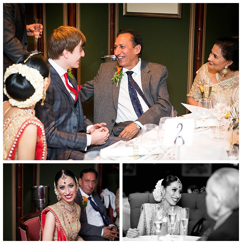 Mayfair Library is a beautiful venue, with two quiet, romantic rooms ideally suited for a more selective wedding party. Ritu, looking stunning, arrived with her father and two bridesmaids who accompanied her up the aisle to a dapper – and very proud looking Matthew. After the wedding ceremony and a few formal group photos at the library, the wedding party continued at Le Gavroche, the iconic eating establishment awarded 3 Michelin Stars under head chef Michel Roux Jnr, in Upper Brook Street.
